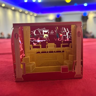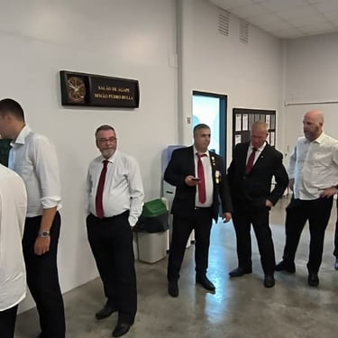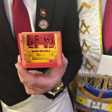 Um dos momentos de maior emoção e simbolismo da noite foi o registro do intercâmbio cultural promovido pelo Ir. William Dariz. Recentemente, o irmão visitou o museu do Grande Oriente da França (GODF), em Paris, e trouxe consigo um presente especial para a Oficina: uma réplica detalhada de um templo francês.