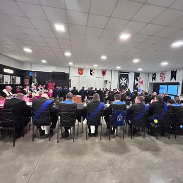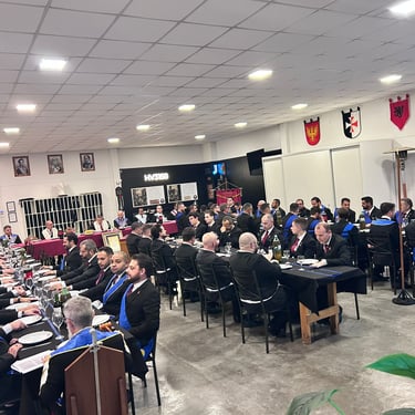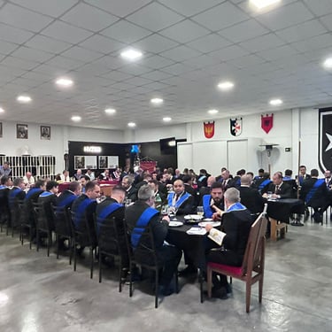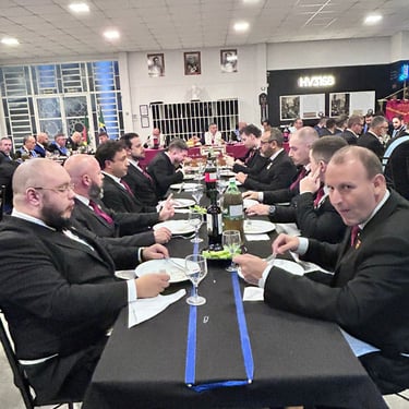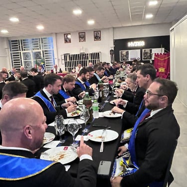 O banquete, conduzido com maestria pelo Mestre de Banquetes e sua dedicada equipe, foi um espetáculo à parte. Os presentes foram brindados com uma variedade de pratos cuidadosamente preparados, culminando em uma rica e refinada sobremesa. O jantar ritualístico foi harmonizado com momentos simbólicos e tradicionais, entre eles os consagrados “fogos”, que deram ainda mais brilho e significado à celebração.