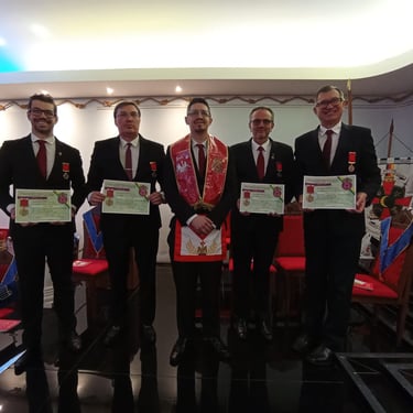 Com a condução luminosa do Aterzata e o apoio dedicado de suas Luzes, Dignidades e Oficiais, os trabalhos transcorreram em um ambiente de solenidade e aprendizado. Nesta primeira parte da manhã, o Capítulo teve a alegria de elevar os Irmãos Evaldo Kuiava, Janur Machado, Diego Piazza, Tarciso Lunardi ao Grau 15 (Cavaleiro da Liberdade), proporcionando a eles a oportunidade de aprofundar seus conhecimentos e compromissos com os ideais do Rito.
